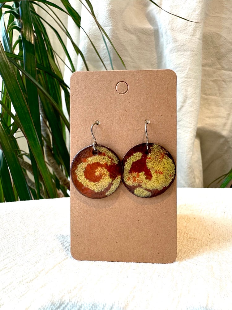 Drop down earrings with enamelled copper, stainless steel ear hooks