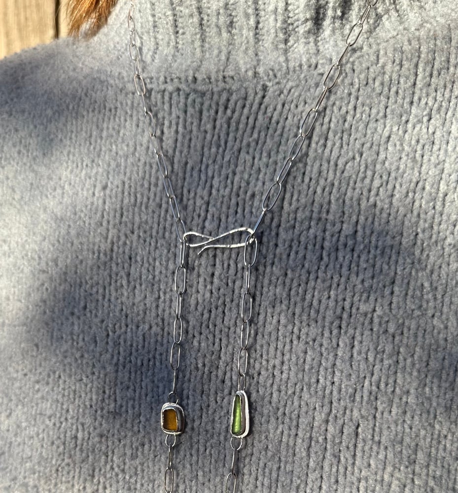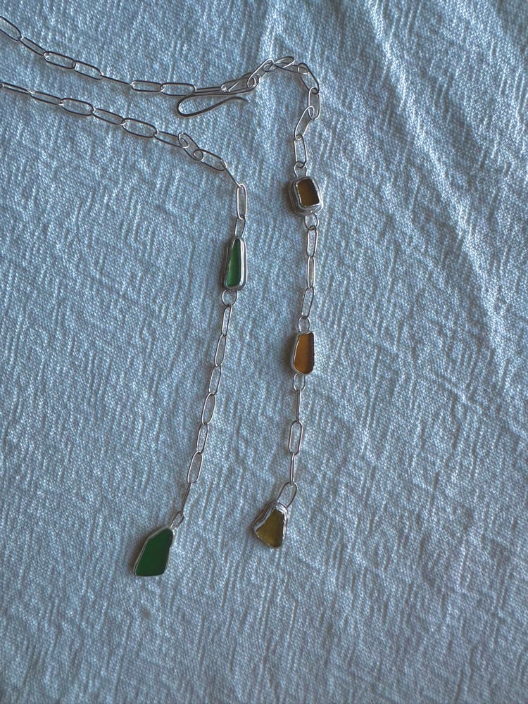 Handmade silver necklace, 5 bezel-set seaglass stones